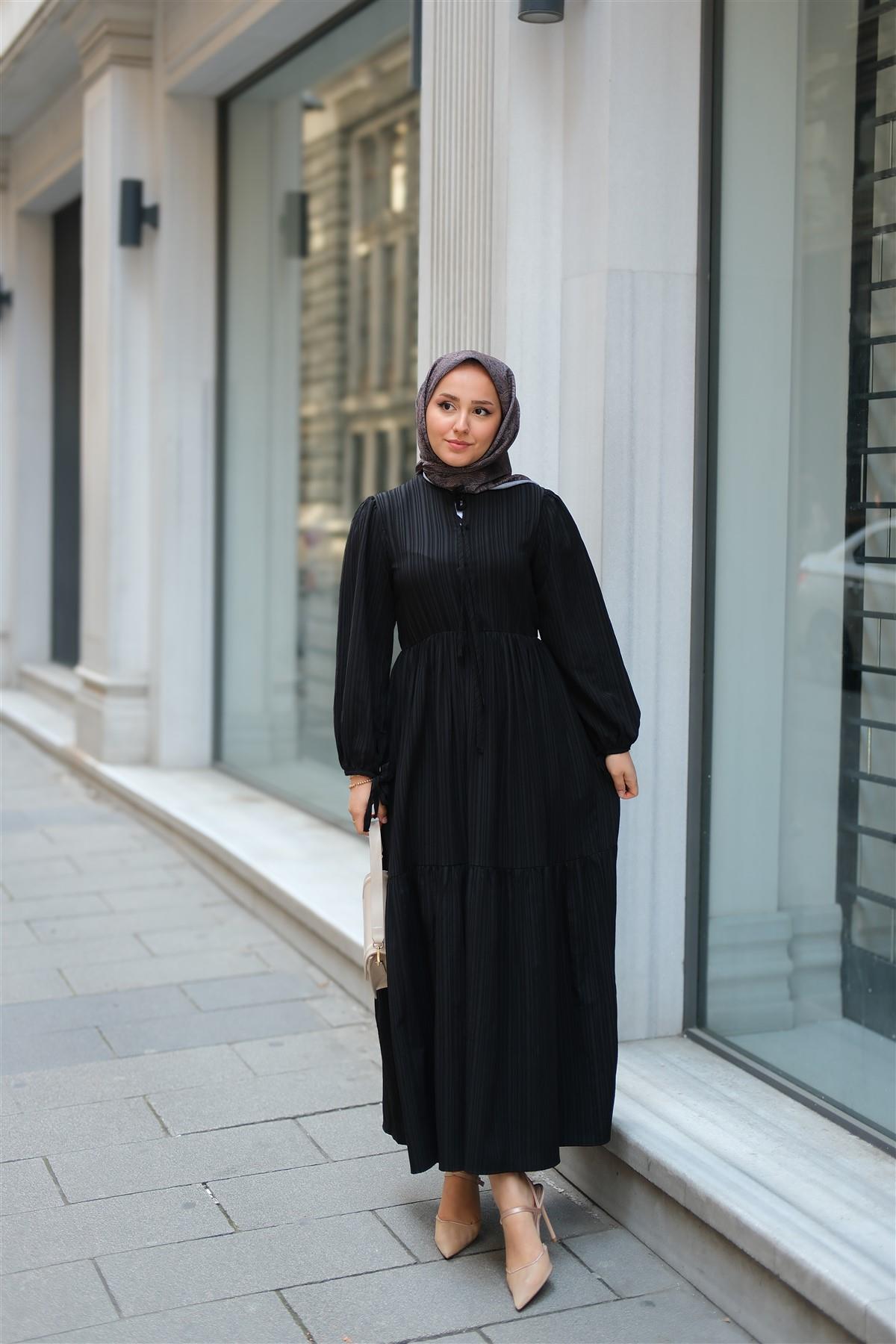 Bel Büzgülü Elbise Siyah