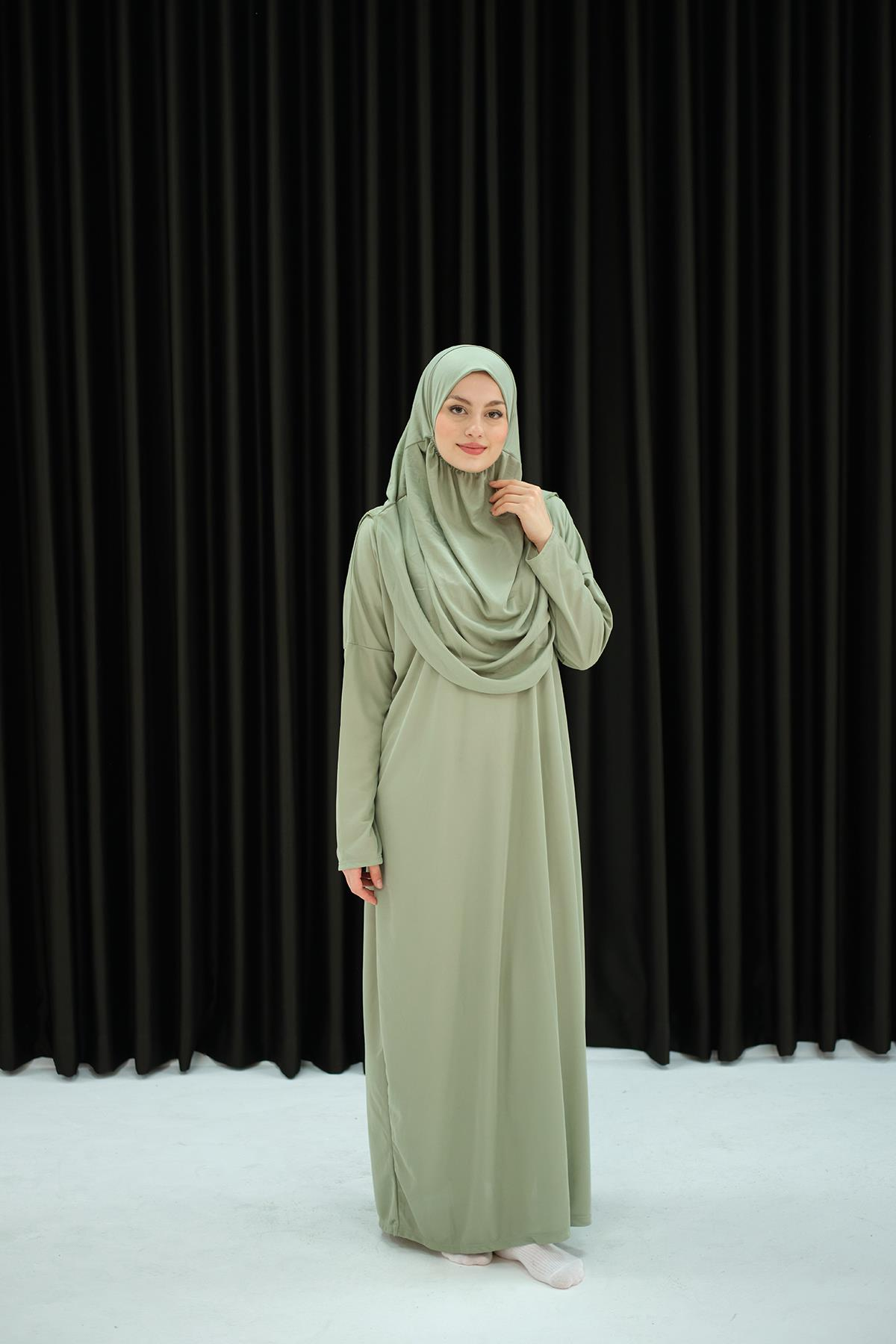 CANTALI TEK PARCA NAMAZ ELBISESI Su Yeşil