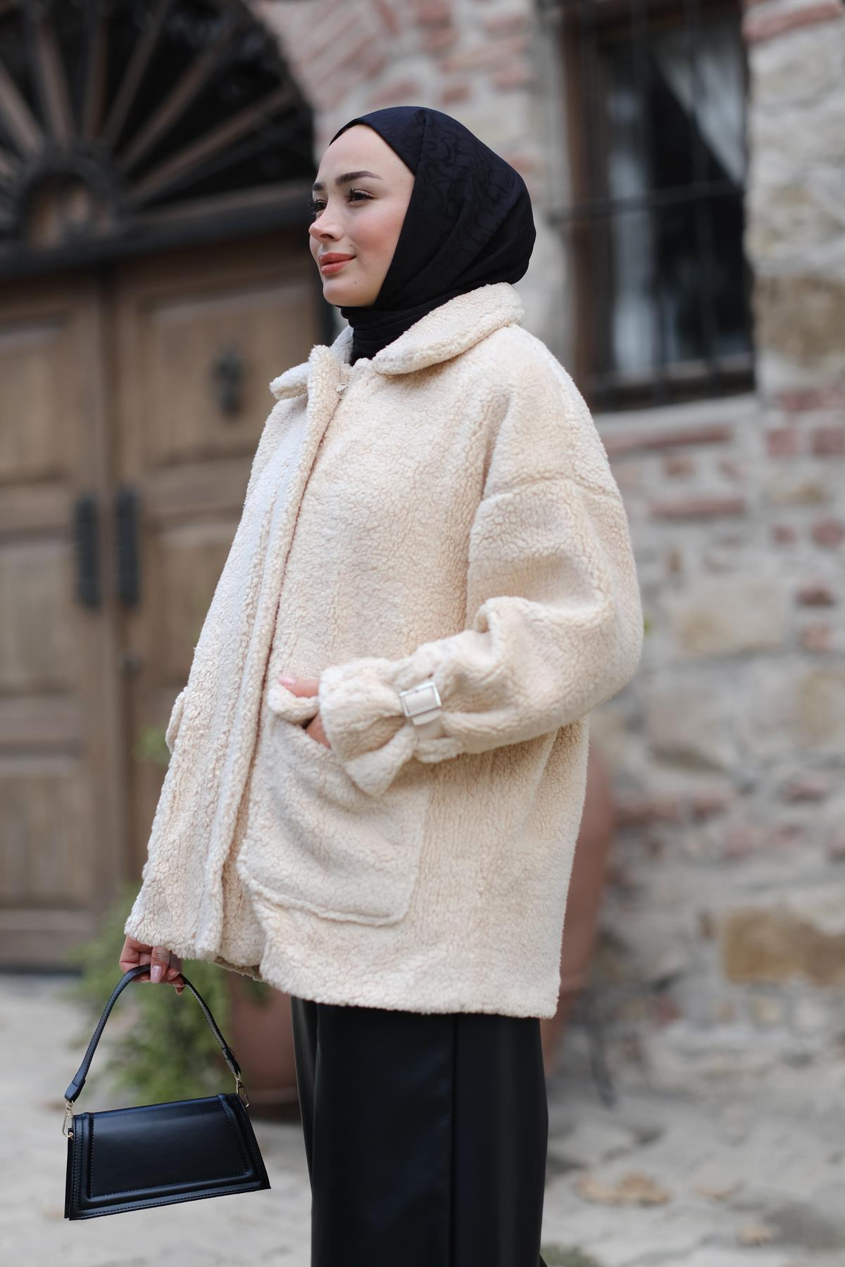 Kol Kemerli Peluş Astarlı Mont Vizon