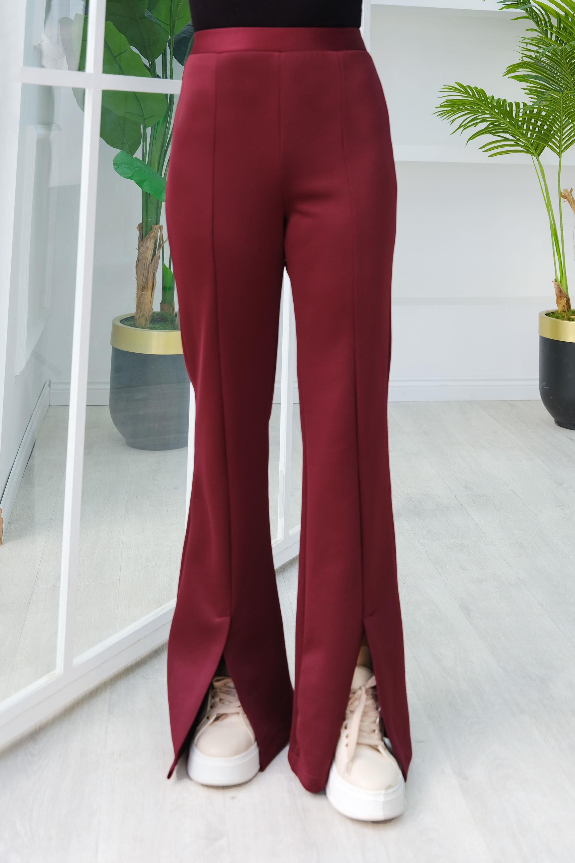 Ön Yırtmaçlı Scuba Pantolon  Mürdüm