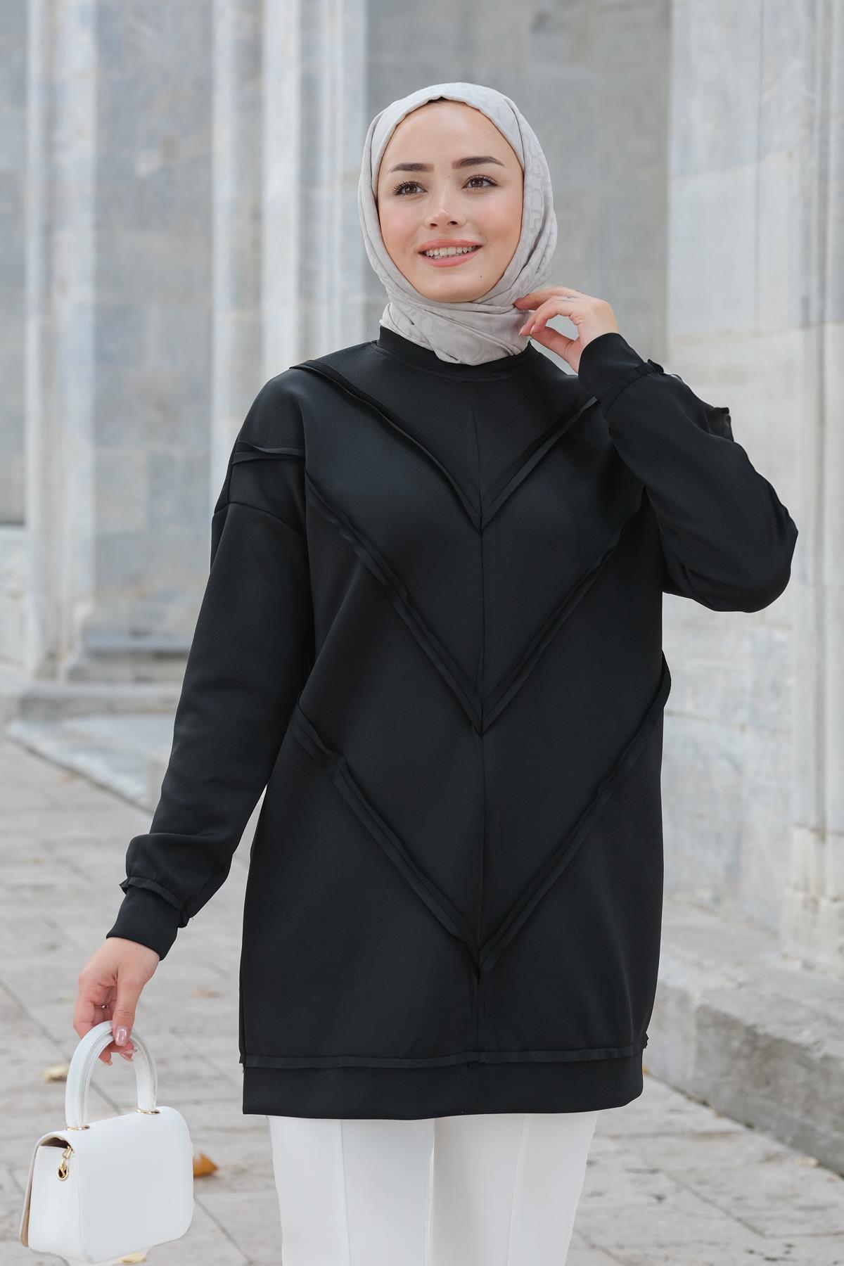 Önü V Detaylı Tunik Siyah