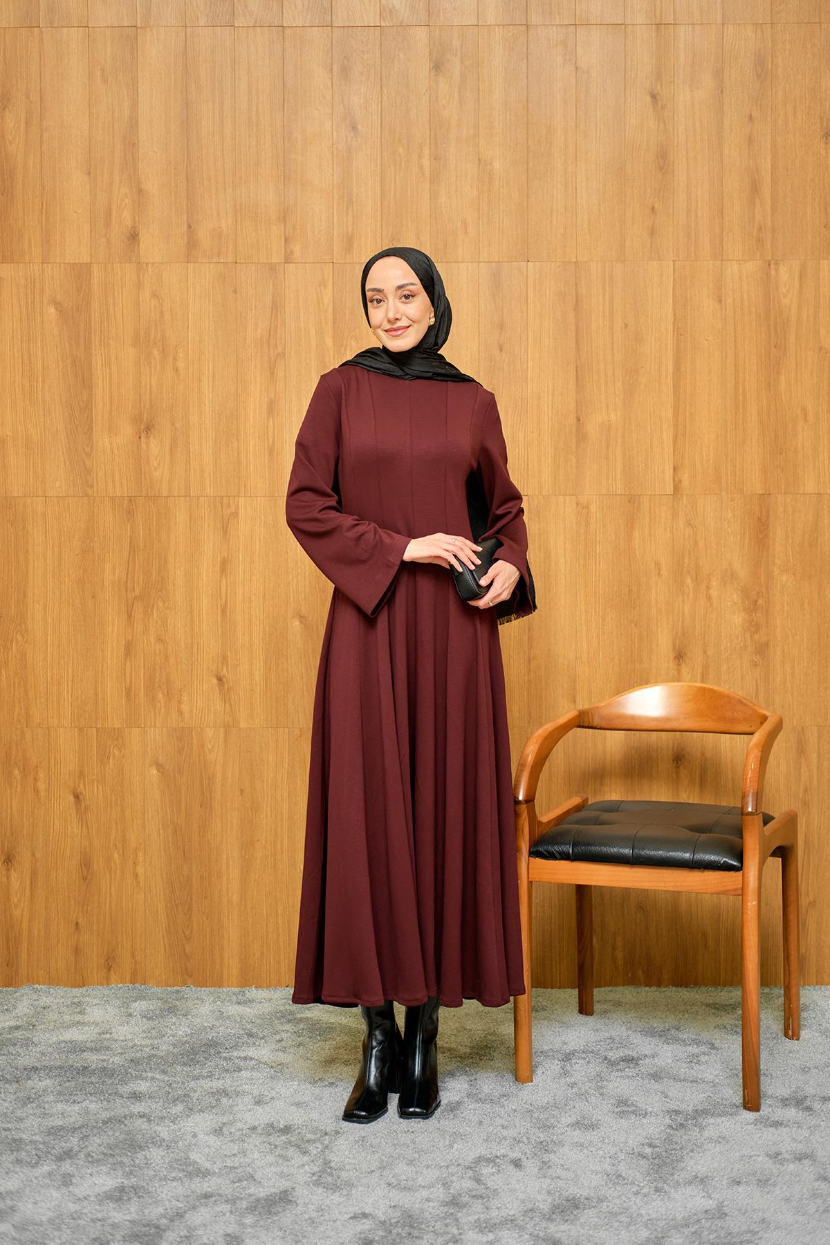 Pile Dikiş Detay Elbise Bordo