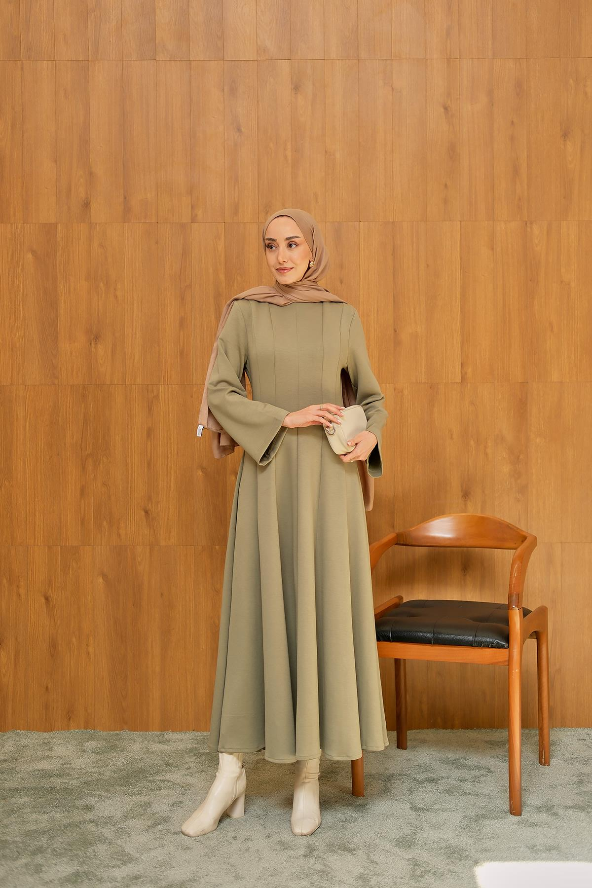 Pile Dikiş Detay Elbise Fıstık Yeşil