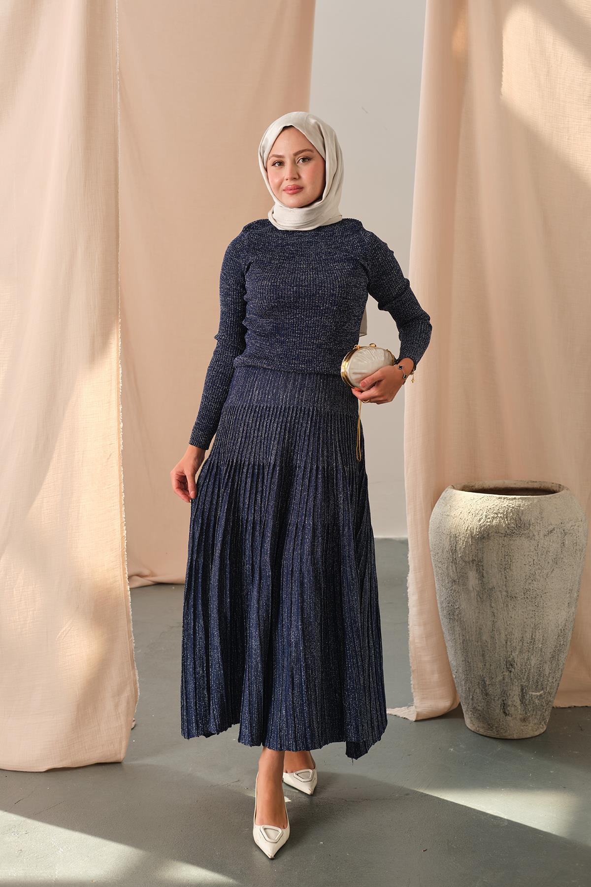 Sim Detaylı Elbise Lacivert